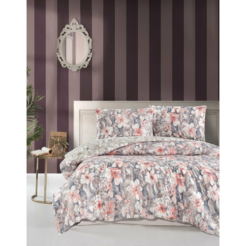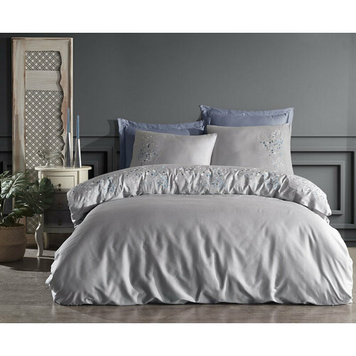Постельное белье с вышивкой, из сатина Alya Dantela Vita (серый), Евро (наволочки 50x70)