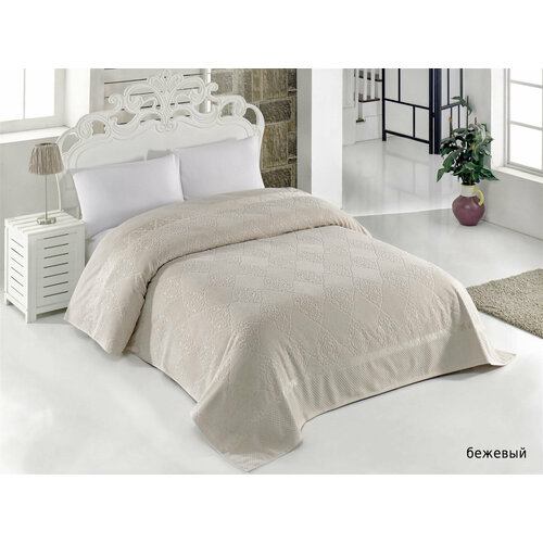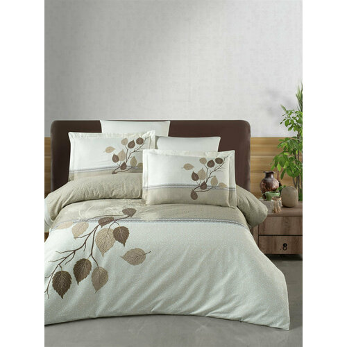 Комплект сатинового белья с вышивкой Luna Dantela Vita (бежевый), Евро (наволочки 50x70)