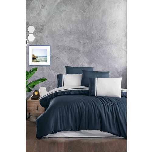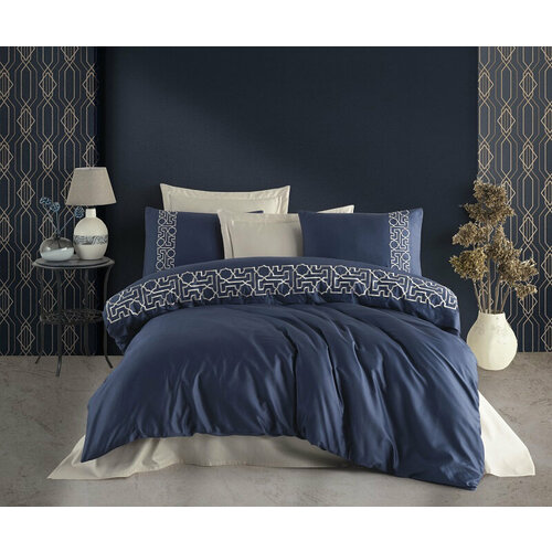 Постельное белье с вышивкой, из сатина Asrin Dantela Vita (синий), Евро (наволочки 50x70)