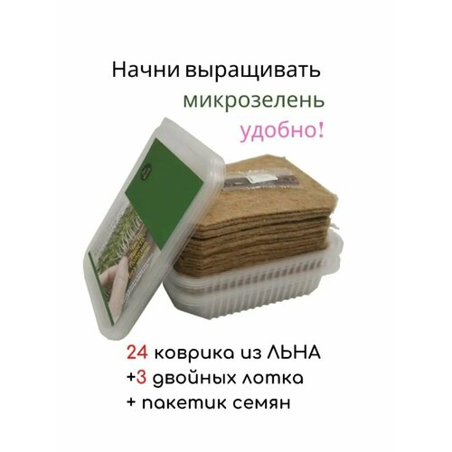 3 двойных лотка + 24 коврика(лён) для выращивания микрозелени