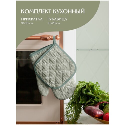 Комплект кухонный рогожка (прихватка 18х18, прихватка-рукавица 18х28) "Mia Cara" рис 30284-10 Жозефина оливковый