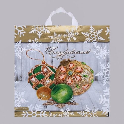 Пакет подарочный новогодний, набор 5 шт. "Бриллиантовый шар", полиэтиленовый с петлевой ручкой 38 х 40 см, 40 мкм / Пакет новогодний