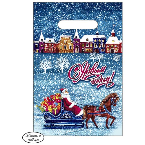 Пакет подарочный новогодний, набор 20 шт. "Снегопад", полиэтиленовый с вырубной ручкой, 20 х 30 см, 30 мкм/ Пакет новогодний