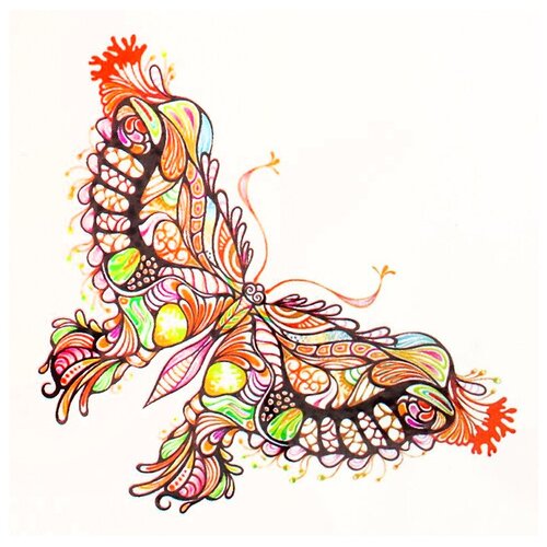 Татуировка на тело цветная "Акварельная бабочка" 6х6 см