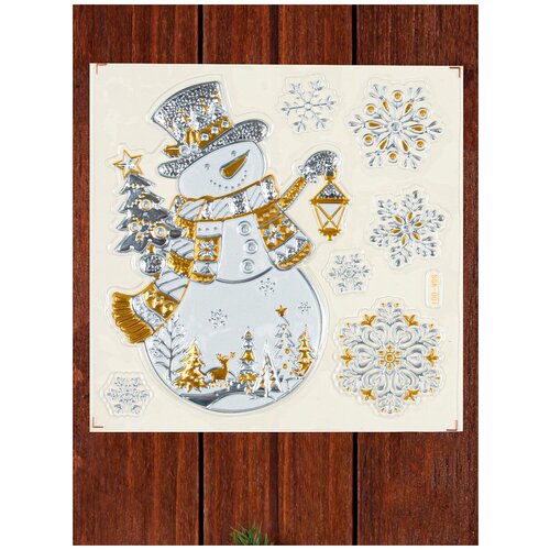 Наклейки на окна новогодние светящиеся "Новогодние" снеговик с фонарем, 24 х 19 см / декор новогодний