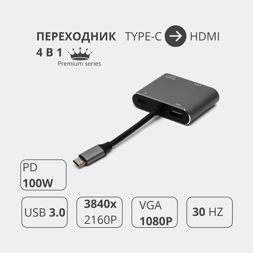 Переходник адаптер HUB 4 в 1 Type-c to HDMI 4K / USB 3.0 / PD 100W / VGA концентратор для MacBook