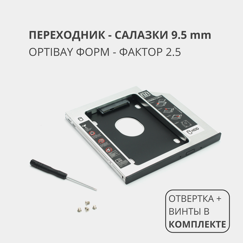 Переходник салазки для дополнительного HDD (optibay) в отсек CD / DVD SATA 9,5 mm