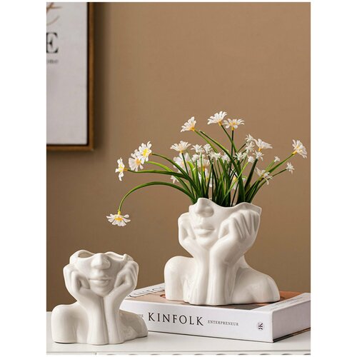 Ваза керамическая задумчивая девушка MINIPO home белая