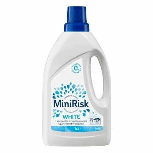 MiniRisk White 1л Гель, жидкое средство для стирки белого белья без отдушек, гипоаллергенный, подходит для детской одежды (из Финляндии)