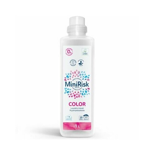MiniRisk Color 1л гель, жидкое средство для стирки цветного белья без отдушек, гипоаллергенный, подходит для детской одежды (из Финляндии)