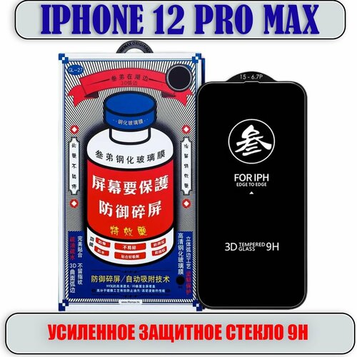 Защитное стекло для iPhone 12 PRO MAX, усиленное 9H, противоударное на Айфон 12 Про Макс