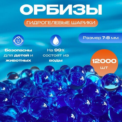Гидрогелевые шарики (пульки) орбизы прозрачные 12000 штук (7 - 8 мм)