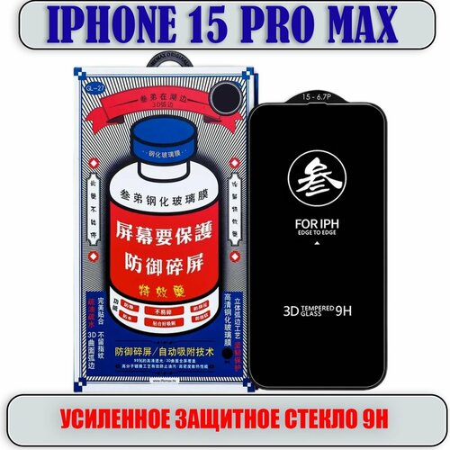 Защитное стекло для iPhone 15 Pro Max, усиленное 9H, противоударное на Айфон 15 Про Макс