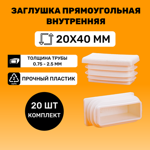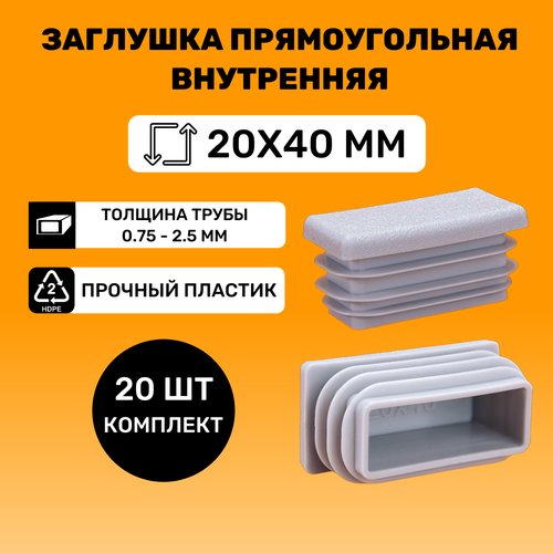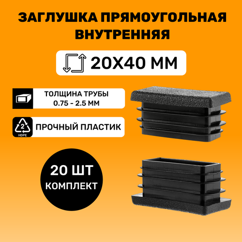 Заглушка прямоугольная 20х40 мм для труб (20 шт.)