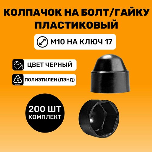 Колпачок на болт/гайку М10 под ключ 17, цвет Черный (200 шт)