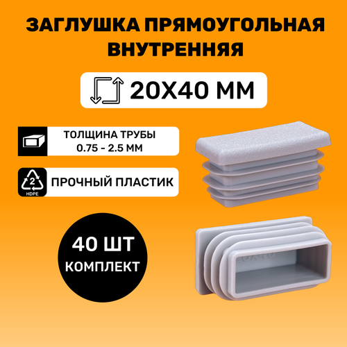 Заглушка прямоугольная 20х40 мм для труб (40 шт.) Серые