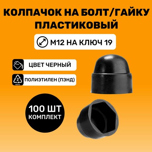 Колпачок на болт/гайку М12 под ключ 19, цвет Черный (100 шт)