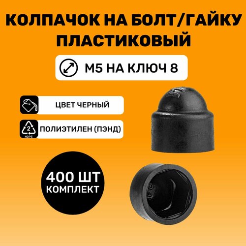 Колпачок на болт/гайку М5 под ключ 8, цвет Черный (400 шт)
