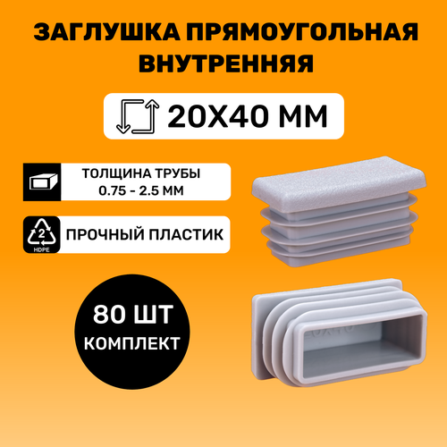 Заглушка прямоугольная 20х40 мм для труб (80 шт.) Серые