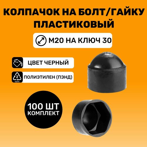 Колпачок на болт/гайку М20 под ключ 30, цвет Черный (100 шт)