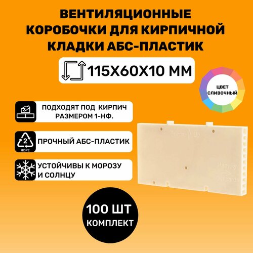 Вентиляционные коробочки для кирпичной кладки 115х60х10 (Сливочный АБС пластик) 100 штук