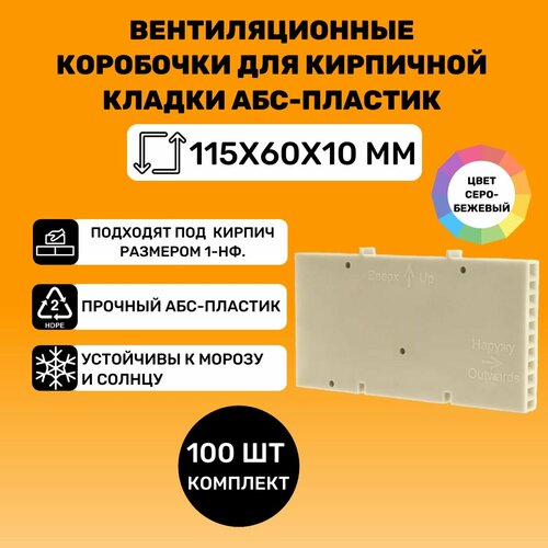 Вентиляционные коробочки для кирпичной кладки 115х60х10 (Серо-бежевый АБС пластик) 100 штук