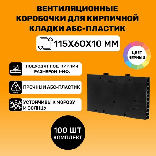 Вентиляционные коробочки для кирпичной кладки 115х60х10 (Черный АБС пластик) 100 штук
