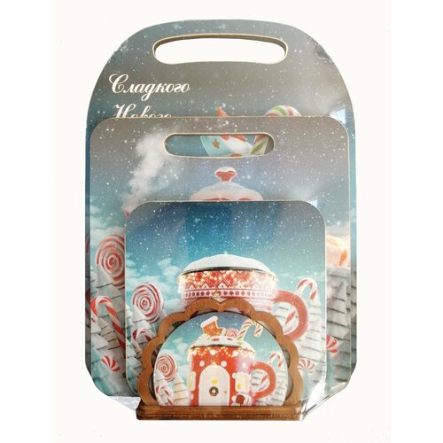 Комплект "Сладкого Нового года" (доска разделочная, доска малая, подставка под горячее 14 см, салфетница)
