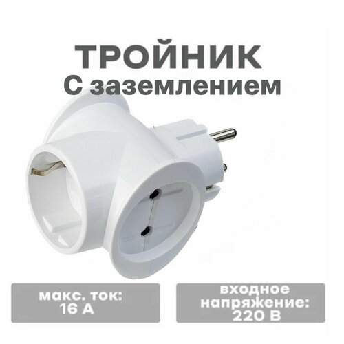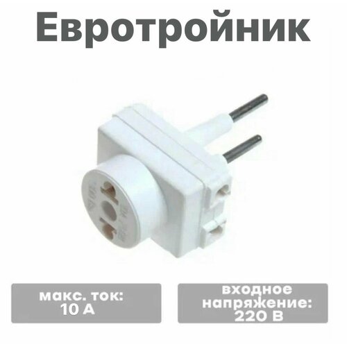 ЕвроТройник для розетки электрический / Без заземления / Белый