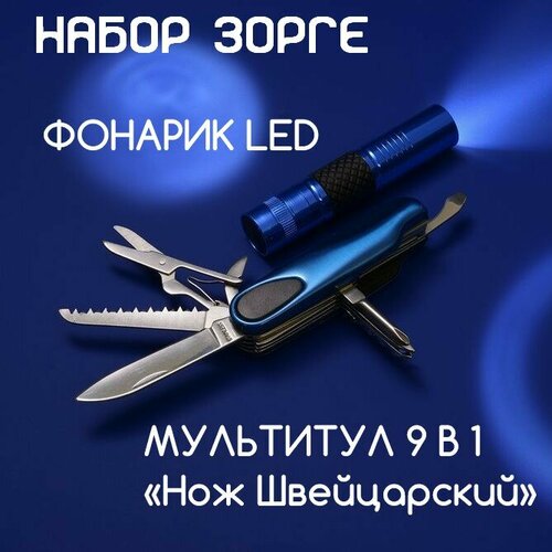 Набор подарочный Зорге: мультитул 9 в 1 "Швейцарский нож" и карманный фонарик