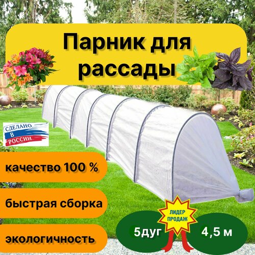 Готовый парник "Дачник Богатый урожай", разборный, длина 4,5 метра, 5 дуг, 18 зажимов, СУФ 42