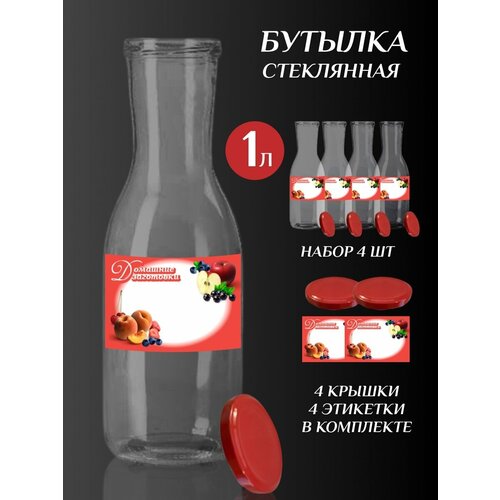 Бутылка стеклянная для заготовок и компота 1 л 4 шт