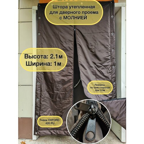 Штора утепленная для дверного проема с молнией. Высота: 2,1 м. Ширина 1 м. ткань OXFORD 420 PU. Люверсы по трем сторонам шаг 0,3 м. Коричневый цвет.