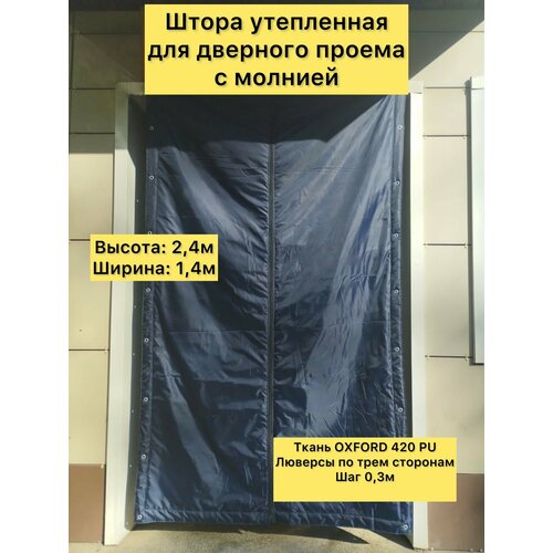 Штора утепленная для дверного проема с молнией. Высота: 2,4 м. Ширина 1,4 м. ткань OXFORD 420 PU. Люверсы по трем сторонам шаг 0,3 м. Цвет синий.