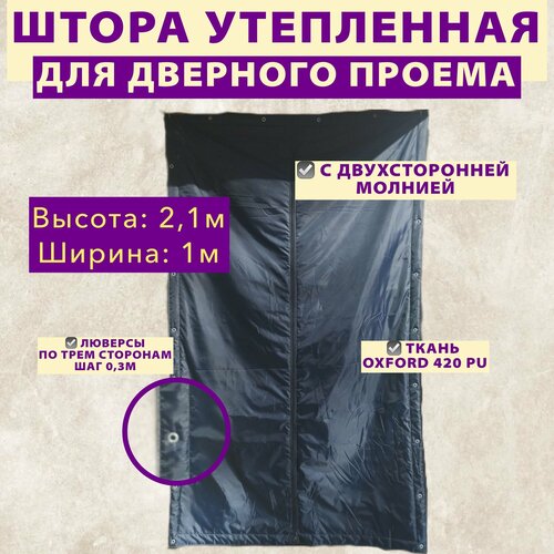 Штора утепленная для дверного проема с молнией. Высота: 2,1 м. Ширина 1 м. ткань OXFORD 420 PU. Люверсы по трем сторонам шаг 0,3 м. Цвет.