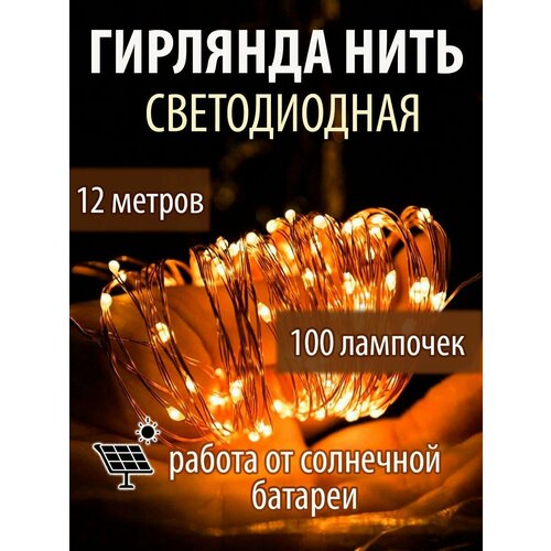 Гирлянда уличная садовая на солнечной батарее 12 м