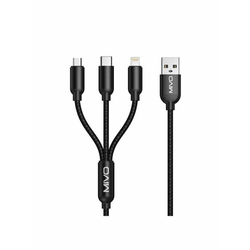 Шнур для зарядки с разъемом 3 в 1 USB-Apple-Lightning+ Micro+Type-C Mivo MX-74 1200 мм/ Провод для зарядки телефона