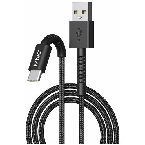 Кабель для зарядки USB-Type-C Mivo MX-47T, 1м, 2.4А, оплетка, Black черный