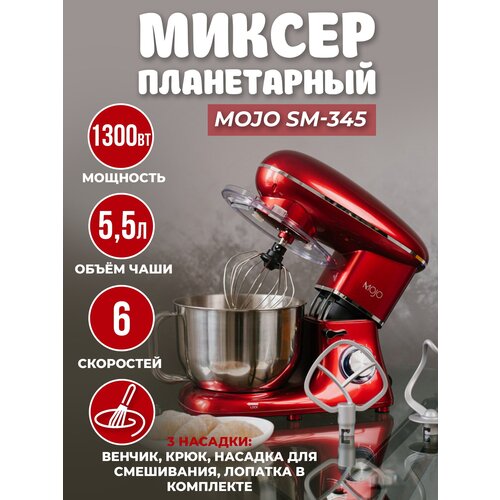 Миксер планетарный MOJO SM-345, объём чаши 5,5 литров, мощность 1300 Вт, 6 скоростей
