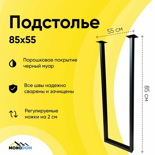 Подстолье для стола в стиле лофт 85х55см, из трубы 50х25, 1шт, черный муар (ножки регулируемые)