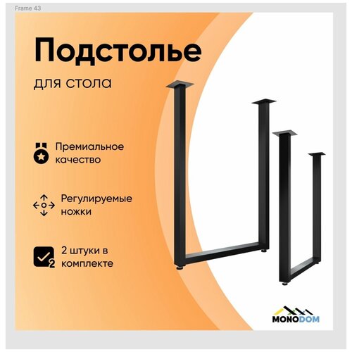 Подстолье для стола в стиле лофт 71х55см, из металла 50х25, 2шт, черный муар (ножки регулируемые)