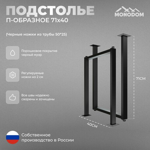 Подстолье для стола в стиле лофт 71х40см, из трубы 50х25, 2шт, муар (ножки регулируемые)