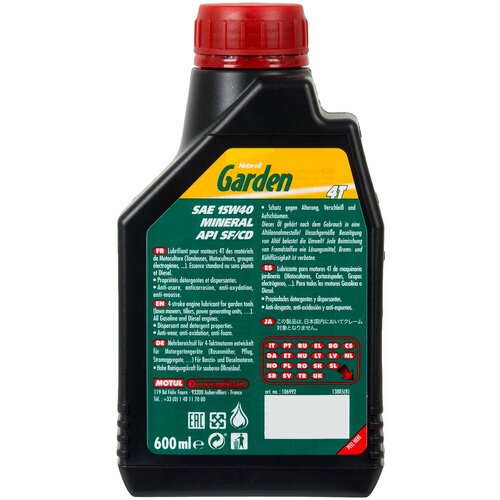 Масло для садовой техники Motul Garden 4T 15W40, 0.6 л
