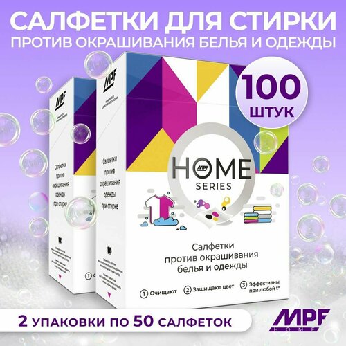 Салфетки для стирки против окрашивания белья и одежды 100 шт, MPF, набор 2 упаковки по 50 шт.