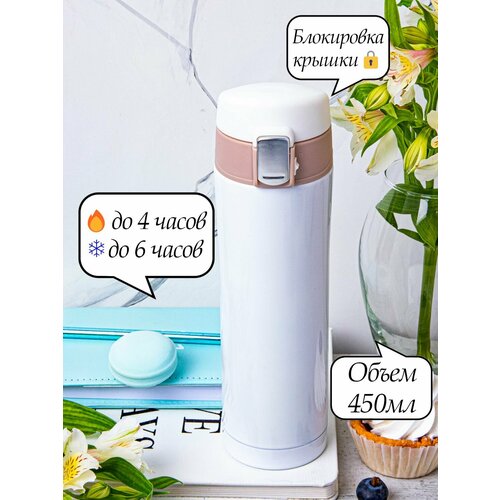 Термокружка MPF из нержавеющей стали белая, 450 мл