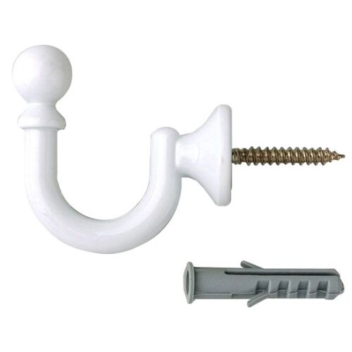 Крючок для штор настенный "Винтовой 35 мм" Белый глянец (1 шт.)