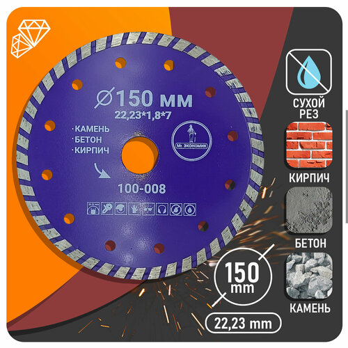 Диск алмазный турбо отрезной 150*22,23мм Mr. экономик, 100-008