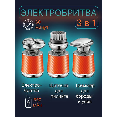 Электробритва 3в1/Бритва электрическая для мужчин /Триммер для бороды и усов / оранжевая
