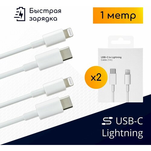 Комплект кабелей Type-C – Lightning для быстрой зарядки Apple iPhone и iPad, 1 метр, белые, в коробках / 2 шт.
