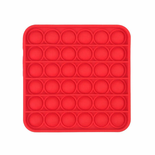 Сенсорная игрушка антистресс POP it с пузырьками Вечная пупырка - Тактильная успокоительная нажимная игрушка шарики Квадрат (11х11см,6 рядов,36 ячеек), Красная